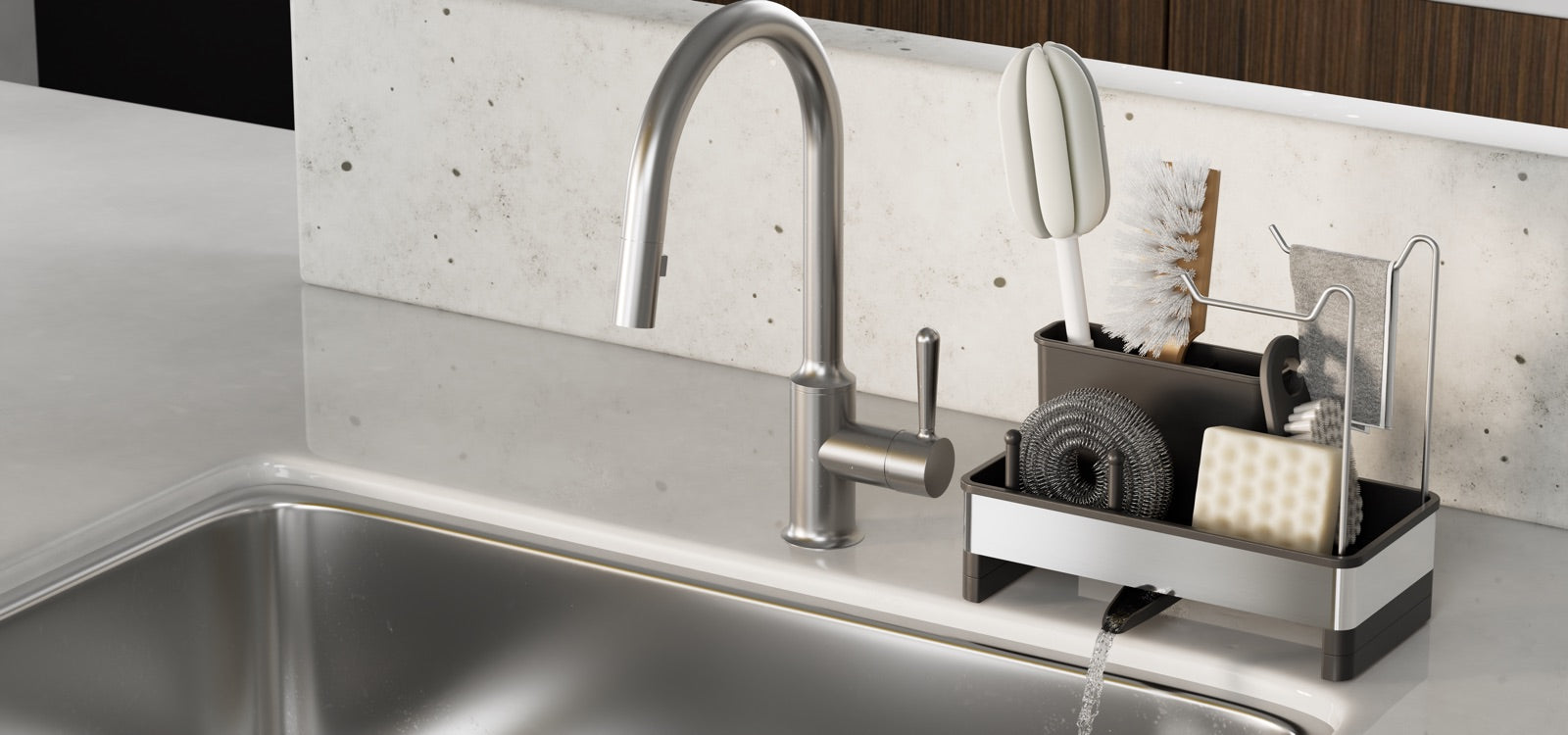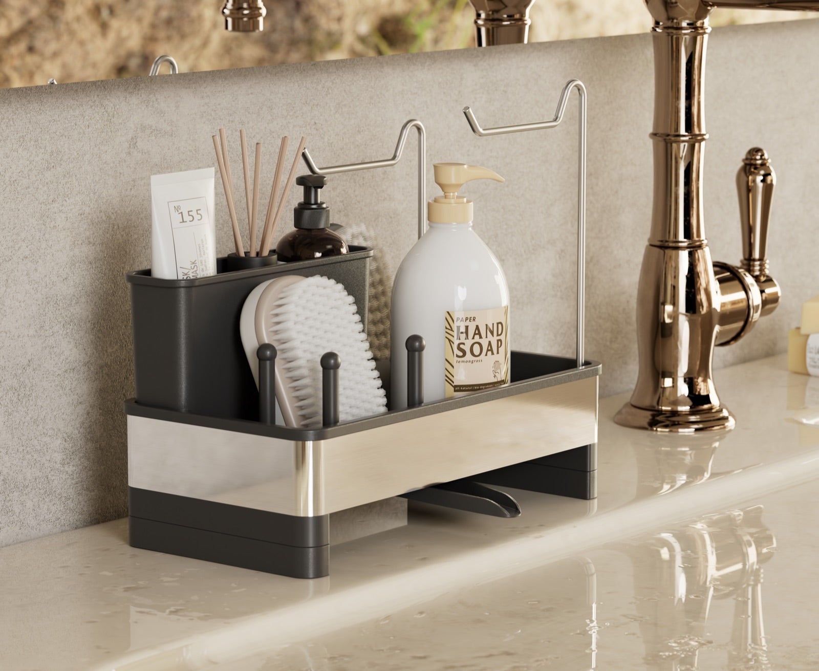 3-in-1 Kitchen Sink Caddy – Rust-Proof Organizer with Automatic Drainage Spout